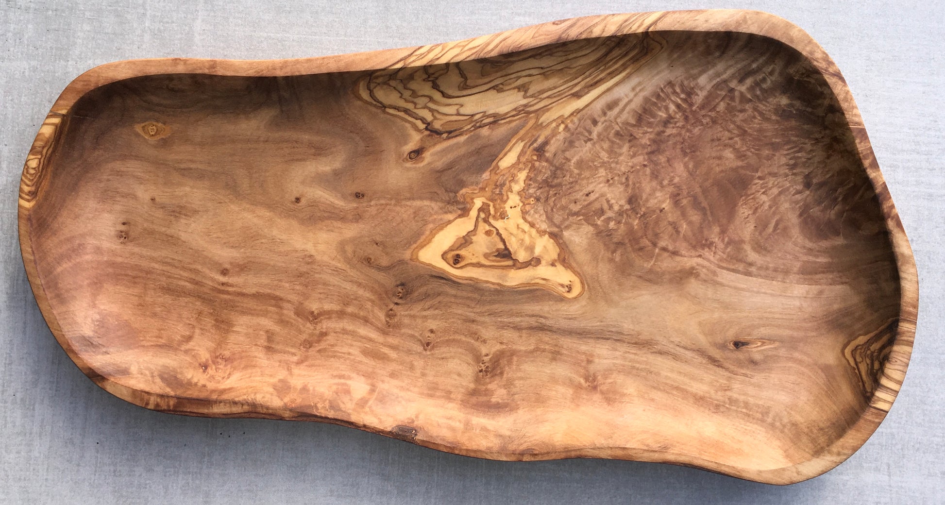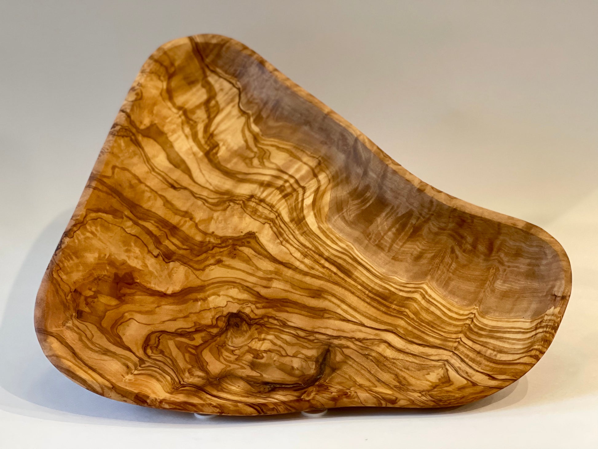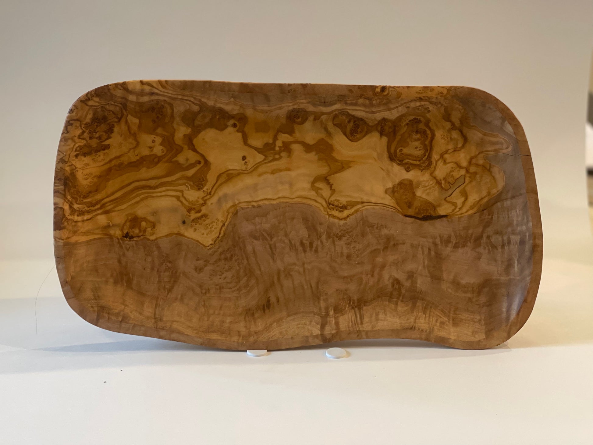 This handcrafted olive wood platter is where nature’s artistry meets everyday function. Carved from a single piece of richly grained olive wood, it features an organic, flowing shape that makes every platter one of a kind.